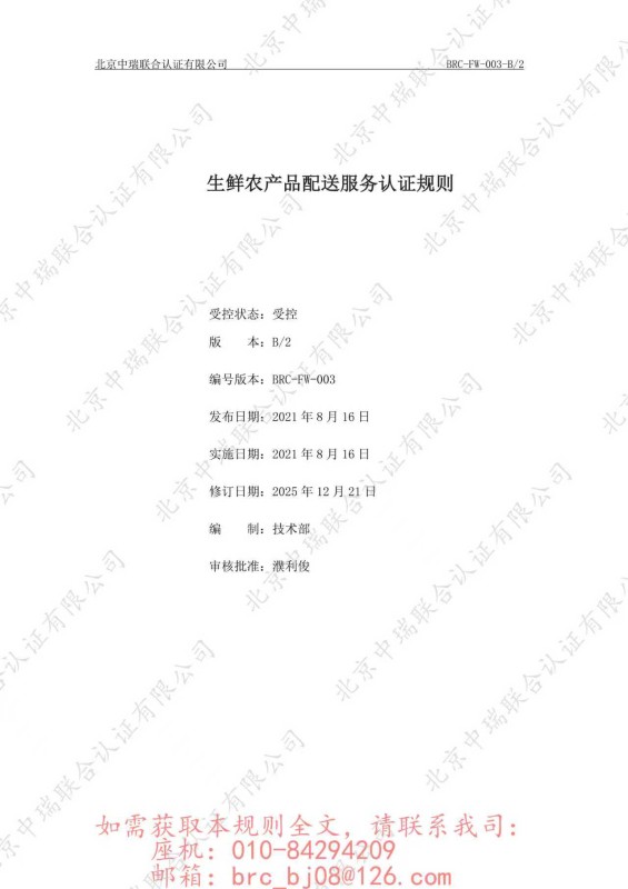 生鲜农产品配送服务认证规则