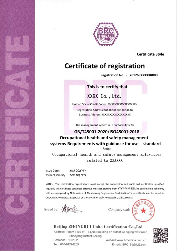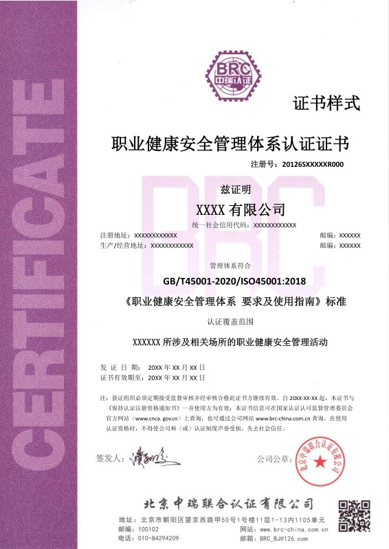 职业健康安全管理体系认证GB/T45001-2020/ISO45001:2018