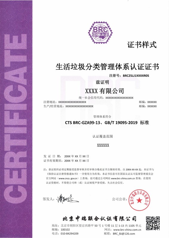 生活垃圾分类管理体系认证GB/T 19095-2019