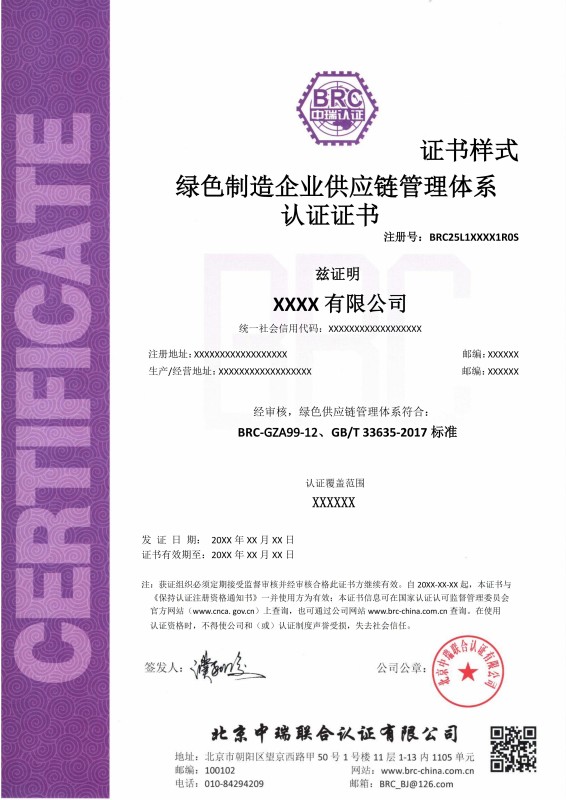 绿色制造企业供应链管理体系认证GB/T 33635-2017