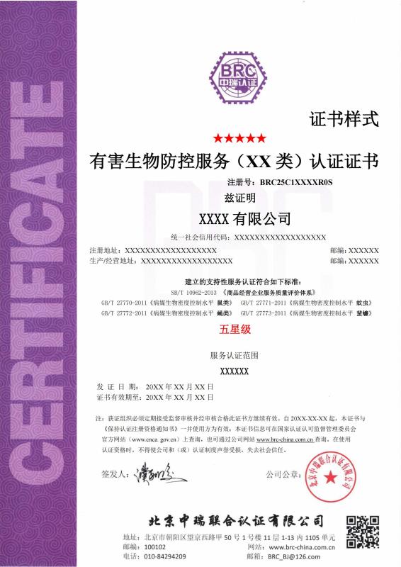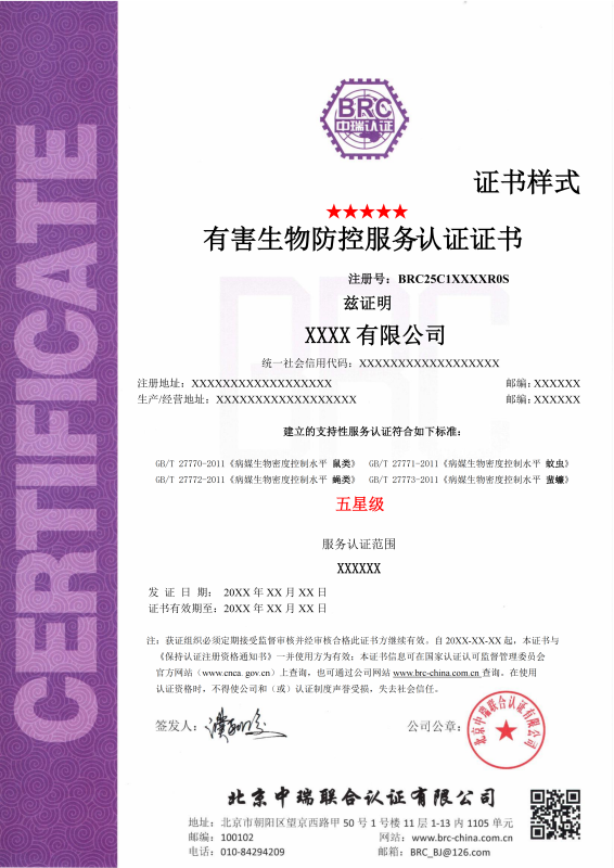 有害生物防控服务认证证书的获得,能够为企业带来良好的经济效益和社会效益。证书的存在可以提高企业的知名度和美誉度,吸引更多的客户和人才,为企业的可持续发展奠定坚实的基础。