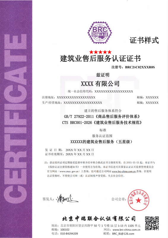 目前,我国建筑业售后服务认证主要依据《商品售后服务评价体系》(GB/T 27922)等国家标准,并结合建筑行业特性进行适配。通过认证的企业可获得星级评定(如五星级),认证结果可作为市场采信、工程评优、招标加分等重要参考依据。